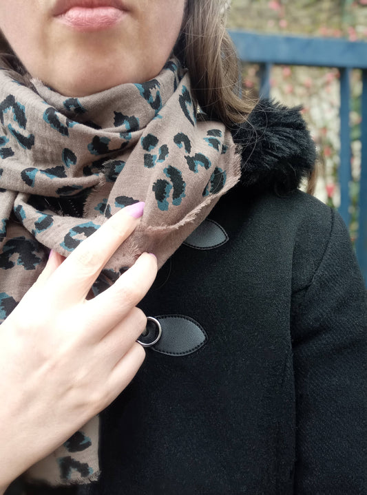 Foulard "Bagheera Bleu" en Coton Oeko-Tex®, gris imprimé léopard, Existe en Écharpe | Made in France