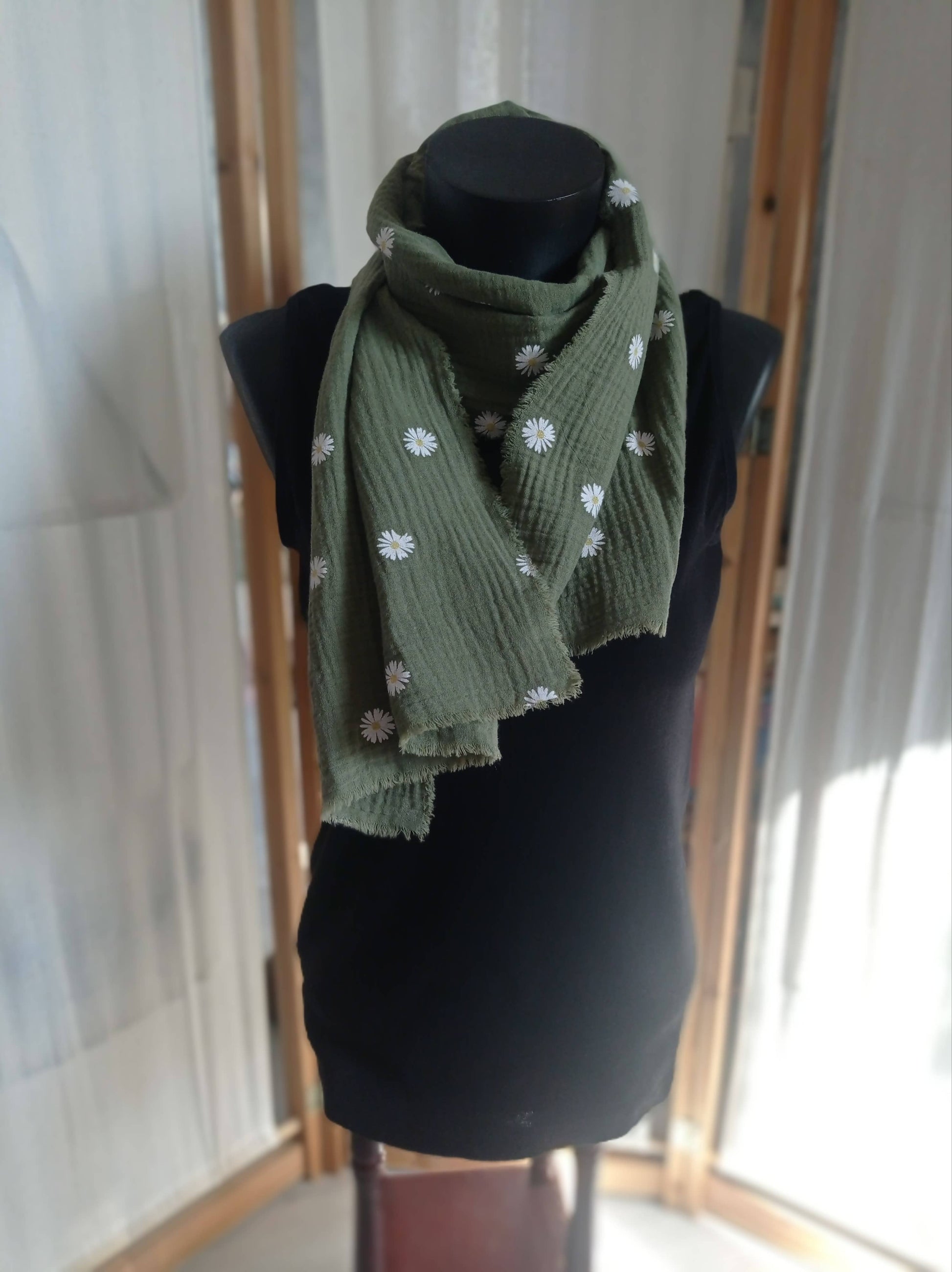 Pour la saison printanière, parsemez votre style de jolies marguerites avec notre foulard léger et élégant en coton biologique, préservant votre santé et notre terre.
